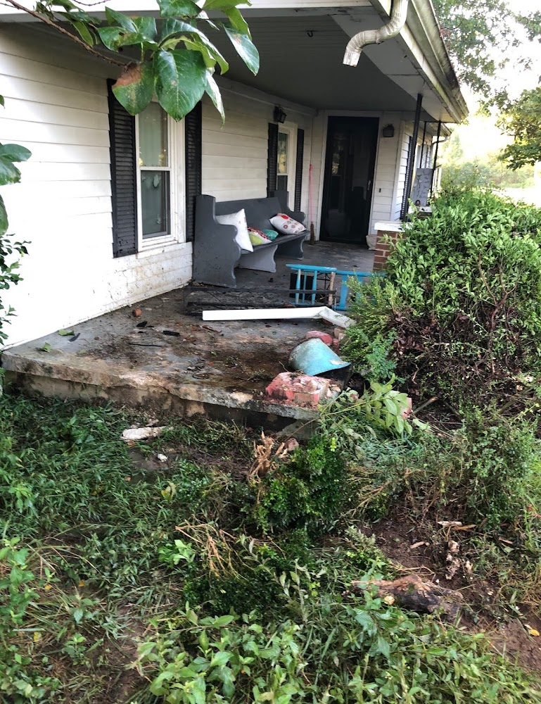 If you can imagine it, last night when I came home from work, I had no idea the police had been there. The accident was on file. All I knew was that my porch was missing a column, my old boxwoods were uprooted and my furniture was not where it belonged.